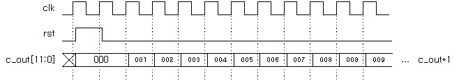 1.Spec up count¸¦ ¼³°èÇØ º¾½Ã´Ù. ÀÔ·Â bit¼ö´Â 12bitÀÔ´Ï´Ù. ½Ã½ºÅÛ clockÀÎ clkÀÇ »ó½Â¿¡¼ Ä«¿îÅÍÀÇ Ãâ·Â c_out[11:0]ÀÌ '1'¾¿ Áõ°¡ÇÕ´Ï´Ù. ¸¸¾à rst°¡ '1'À̸é Ä«¿îÅÍÀÇ Ãâ·ÂÀº '0'À¸·Î ÃʱâÈ µÇ°í, ±×·¸Áö ¾ÊÀº °æ¿ì Ä«¿îÅ͸¦ ÇÕ´Ï´Ù, °¡Àå ±âº»ÀûÀÎ countÀ̹ǷΠ½±°Ô ÀÌÇØÇÒ ¼ö ÀÖÀ» °Ì´Ï´Ù. 2.Input/Output
