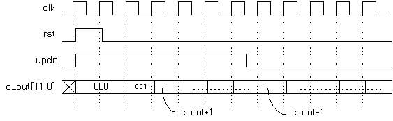 1.Spec À̹ø¿¡´Â UpDown count¸¦ ¼³°èÇØ º¸°Ú½À´Ï´Ù. ¾Õ¼ ¼³°èÇÑ Up count¿¡ Up°ú DownÀ» controlÇÒ ¼ö ÀÖ´Â updnÀ̶õ signalÀ» Ãß°¡Çß½À´Ï´Ù. ÀÌ signalÀÇ °ª¿¡ µû¶ó count°ªÀ» Áõ°¡ ȤÀº °¨¼ÒÇÒ ¼ö ÀÖ½À´Ï´Ù. 2.Input/Output
