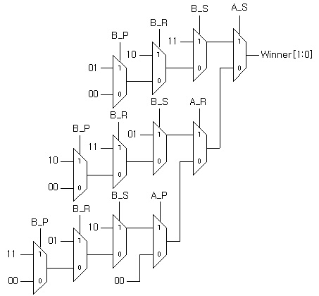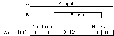 1.Spec °¡À§, ¹ÙÀ§,º¸ °ÔÀÓÇØ º¸°Ú½À´Ï´Ù. °ÔÀÓÀ» ÇÑ ÈÄ, A°¡ À̱â¸é "01", B°¡ À̱â¸é "10", A¿Í B°¡ ¶È°°Àº °ÍÀ» ³»¸é "11"À» Ãâ·ÂÇÕ´Ï´Ù. ±×¿ÜÀÇ °æ¿ì´Â No_GameÀ¸·Î °£ÁÖÇÏ¿© "00"À» Ãâ·ÂÇÏ´Â LogicÀÔ´Ï´Ù. 2.Input/Output