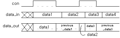 1.Spec con signalÀÌ '1'ÀÏ °æ¿ì ÀÔ·Â data¸¦ Ãâ·ÂÇÕ´Ï´Ù. source¿¡¼´Â Á¤ÀÇÇÏÁö ¾ÊÀº con signalÀÌ '0'ÀÏ ¶§´Â Ãâ·Â data°¡ ±âÁ¸ÀÇ data°ªÀ» ±×´ë·Î À¯ÁöÇϰí ÀÖ½À´Ï´Ù. Áï, µÎ ¹øÂ° ÄÁ¼ÁÀº latchÀÔ´Ï´Ù. 2.Input/Output